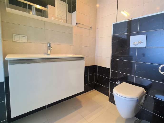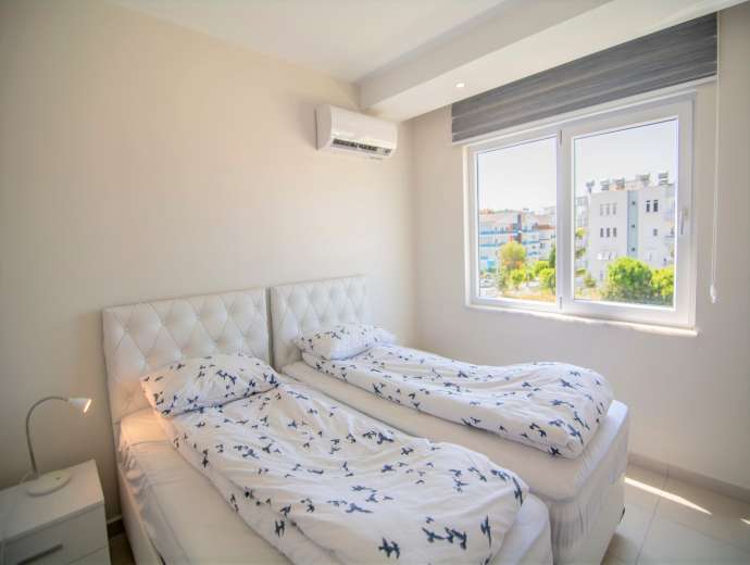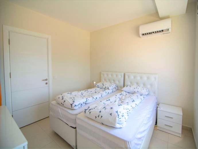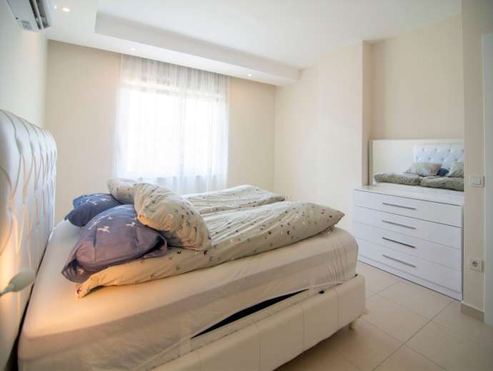 Lägeneheten har två sovrum, den ena med dubbelsäng och den andra med två enkelsängar. Det ena sovrummet har en-suite badrum. Ytterligare ett gemensamt badrum i hallen. Säljes fullt möblerad med vitvaror och A/C i alla rum.