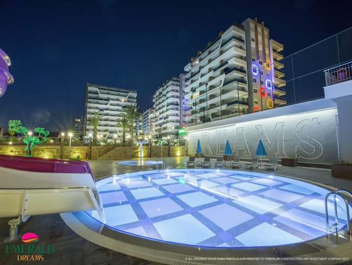 Emerald Dreams är byggd på 12 000 m2 stor tomt och består av 184 lägenheter. På området finns det många möjligheter att säkerställa din säkerhet, komfort och njutning. Här har du faciliteter som gym, spa- och hälsocenter, restaurang, spelrum, biograf, tennisbana, barnklubb, pool, grillplats, butik och frisör - allt för att du ska trivas.