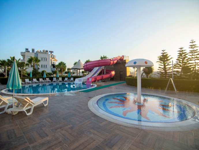Bostadsområdet är anpassad efter våra olika behov, så att lekande barn inte stör dem som önskar att ligga vid en lugn pool. Bostadsområdet har en extra pool med vattenrutschbanor, vilket innebär att det blir en lugnare och tystare miljö vid huvudpoolen och solsängarna.